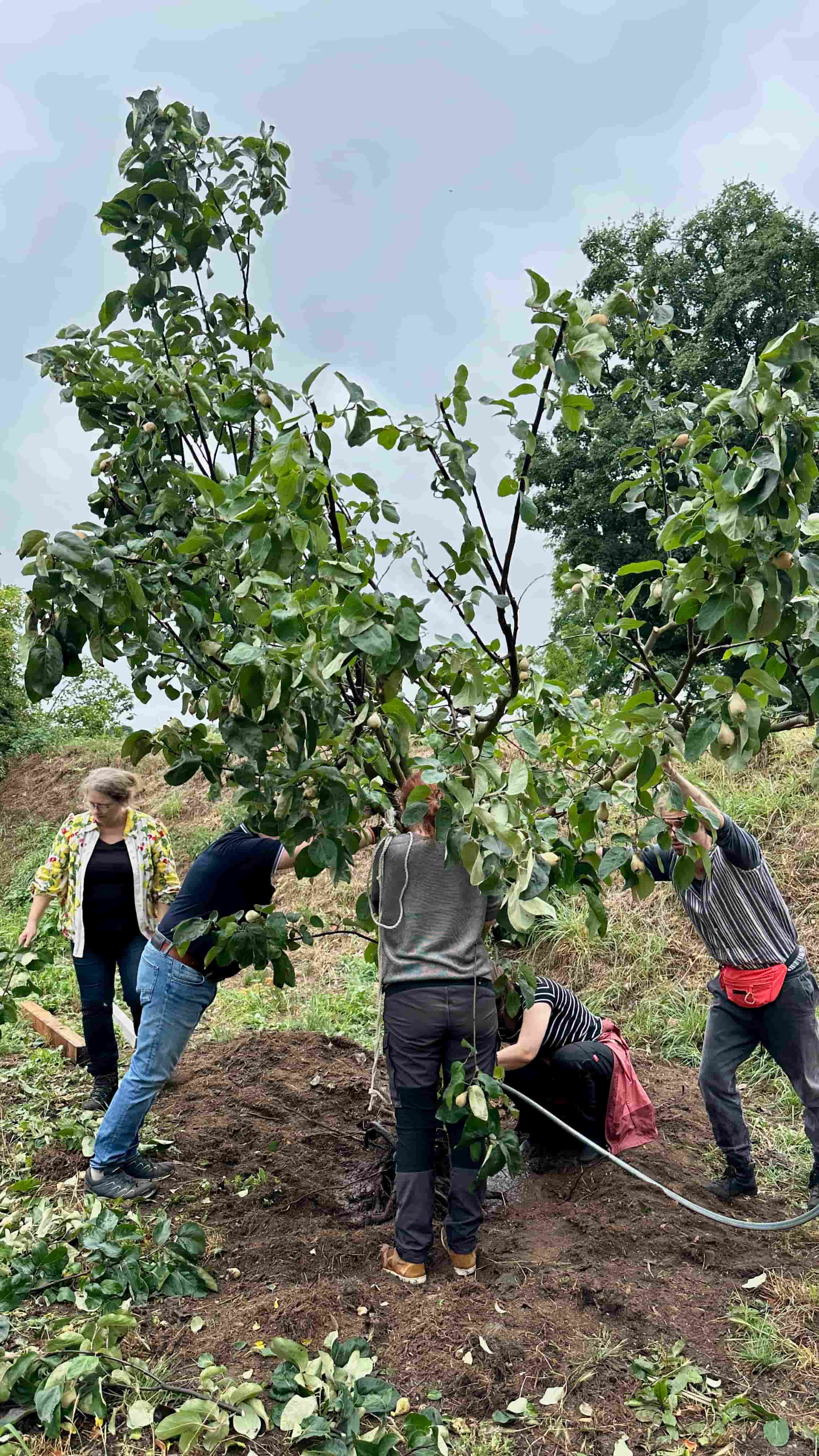 Together, we create regenerative elements on site. A raised bed. A team of plants. The principle becomes crystal clear using the example of the fruit tree community: A tree never stands alone. It is deliberately surrounded by partner plants that fertilize, protect, and connect. Together, we plant a system that strengthens itself through its diversity, instead of competing.