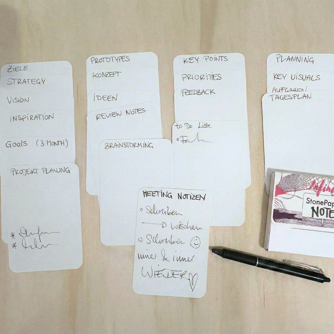 We always have the notes with us now. Whether on the train, in the park, or in a café. Usually in combination with the cards and the folder.