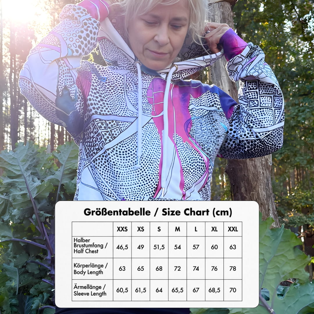 Wir setzen auf kurze Lieferketten und transparente Fertigung in Europa. Die hochwertige Verarbeitung und modernste umweltfreundliche Drucktechnologie (Kornit) garantieren, dass der Hoodie auch nach vielen Wäschen (maschinenwaschbar) Form und Farbe behält.