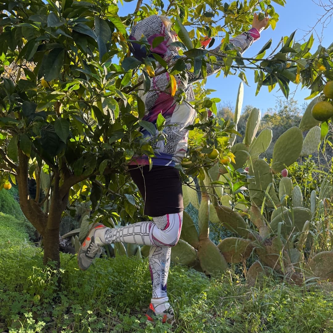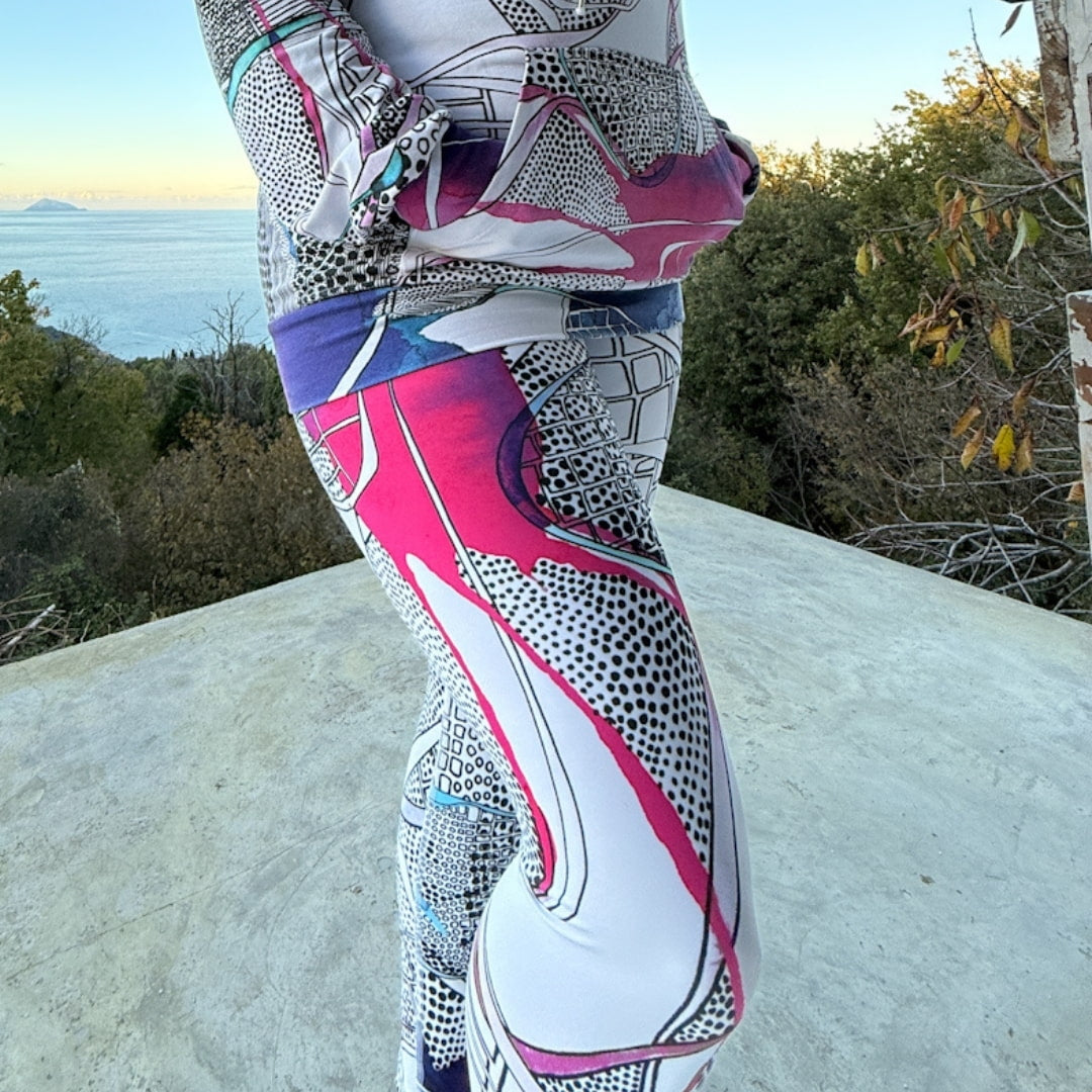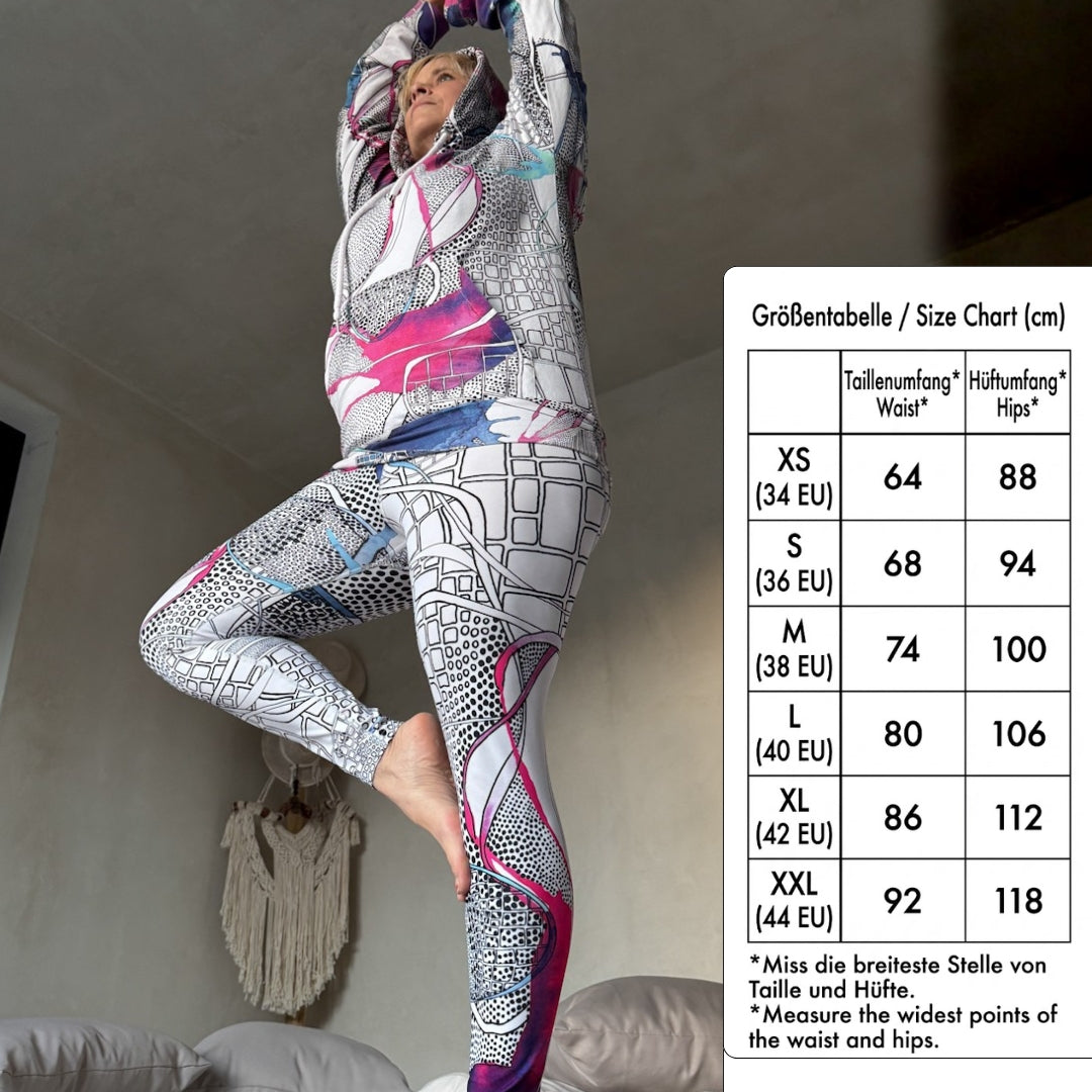 Ein Design das Lebendigkeit feiert. Statt Uniformität trägst du ein Unikat. Die organischen Formen und Farben unterstreichen jeden Schritt. Das Muster macht die Leggings zu einem Kunstwerk das nicht im Museum hängt sondern aktiv die Welt bewegt.