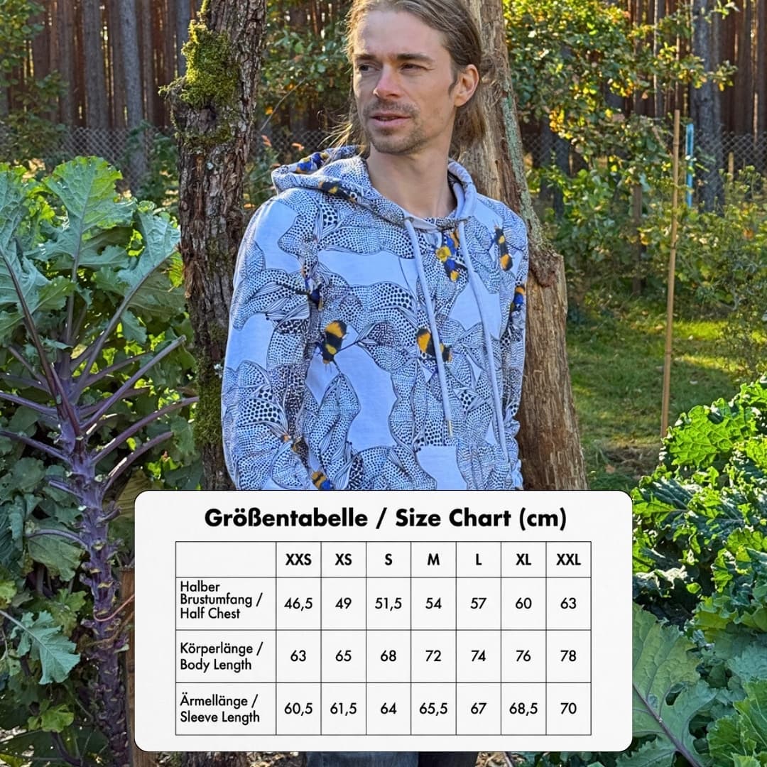 Der Unisex-Schnitt ist konsequent auf Bewegungsfreiheit ausgelegt. Die Größen fallen bei Frauen etwas größer bei Männern etwas kleiner aus (siehe Tabelle im Foto).
