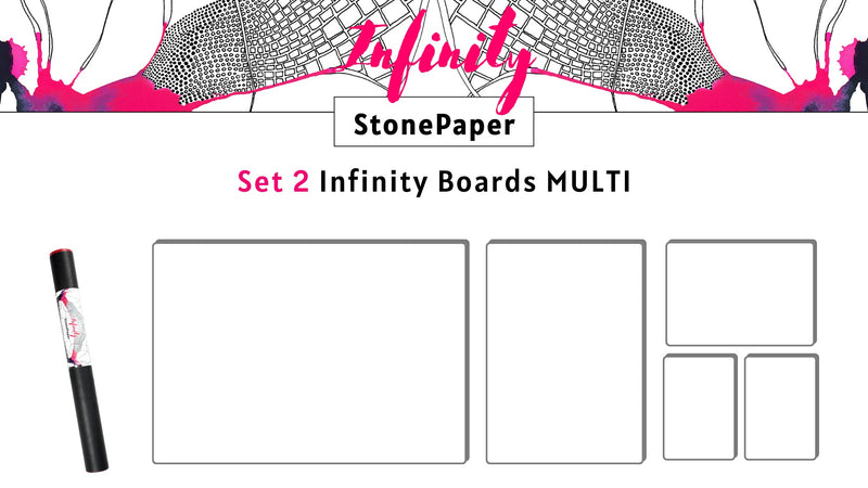 5x Infinity Stonepaper Boards in unterschiedlichen Größen in einer stylischen Tragerolle.